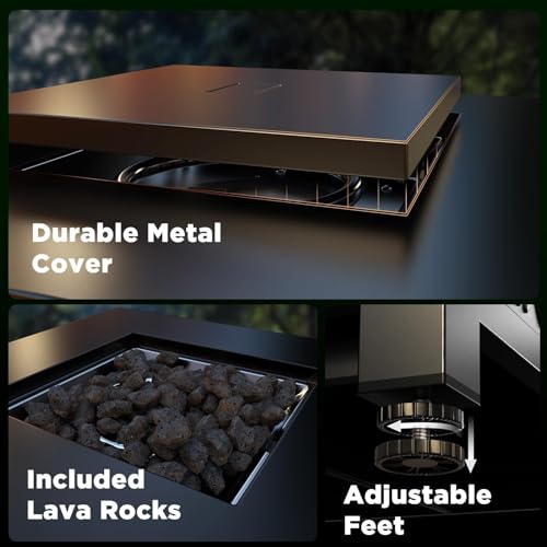 - Extra Benefits: To spice up the party atmosphere, our outdoor propane fire pit has lava rocks in the center of the pit, imagining taking a glance into a volcano. The fire pit table has an external fire level control to easily maintain the atmosphere and heat level, furthermore, a pit lid for when the party is over.