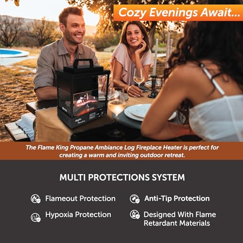 - CLEAN, SMOKELESS, AND REALISTIC FLAME: Enjoy realistic dancing flames like that of a fireplace; this ALOGFIRE Propane Ambiance Log Fireplace is compact and portable with an easy-grip handle designed to bring great ambiance to almost any patio dining or lounge area.