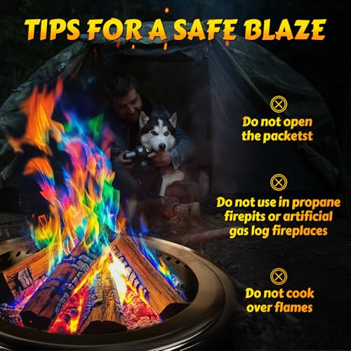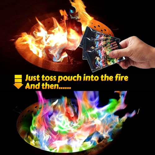 - COLOR FLAMES FOR FIRE PIT: Transform any campfire! Our magic flame packets create vibrant, colorful, and mesmerizing flames for your outdoor fire pit, backyard, or camping adventures. Get ready for an unforgettable, dazzling light show that will amaze everyone