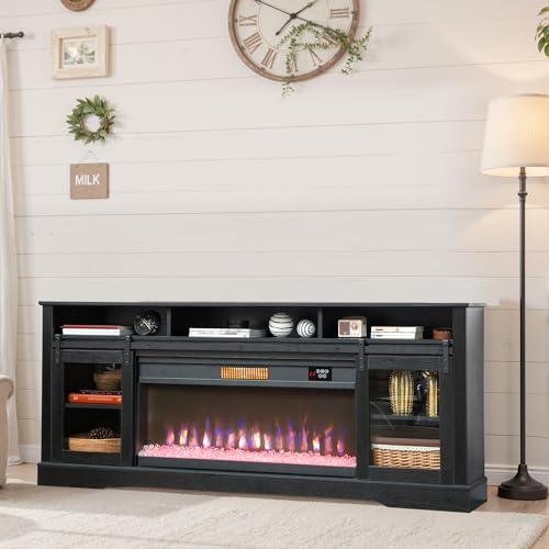 - Spacious Entertainment Center: A wide surface fits TVs up to 80". Two glass-door cabinets and three open compartments keep devices organized. The fireplace TV stand creates a cinematic, clutter-free living room for daily relaxation
