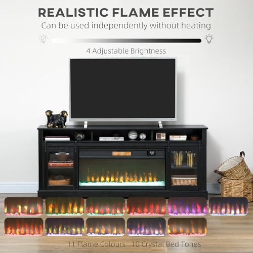- Customizable Atmosphere: Personalize your electric fireplace with a mantel using 11 flame colors dancing over 10 crystal bed tones and four brightness levels, tailoring the mood for every celebration or cozy family night