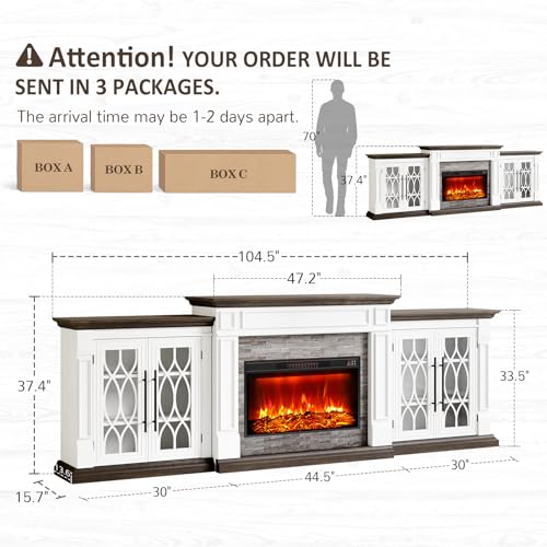 - 【2025 Latest and Largest Size】104.5"W x 15.7"D x 37.4"H for TVs of all sizes. Surround Realistic Stacked Stone finish, and serpentine shaped edge design, Naice electric fireplace with mantel adds rustic charm flair to any room.