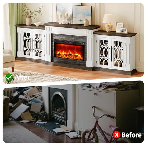 - 【30" Efficient Heater】Both safe and convenient, the 1400W fireplace heater has a high power output of 5,000 BTU, warming up to 400 square foot room to enjoy the constant warmth and beauty without the smoke and ashes. Overheat protection and flame failure protection makes more safety.