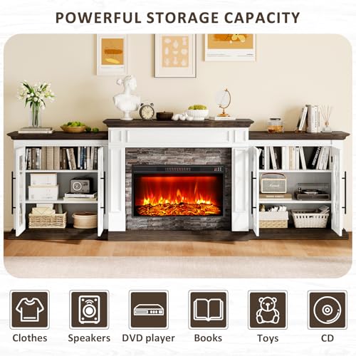 - 【Ample Storage Space】With 2 storage cabinets (=60"W) and 47" large tabletop, the fireplace TV stand keeps TVs media, CDs and books organized. Adjustable shelves inside the cabinet make it easy to customize the space for your ornaments. The cabinets can be used alone.