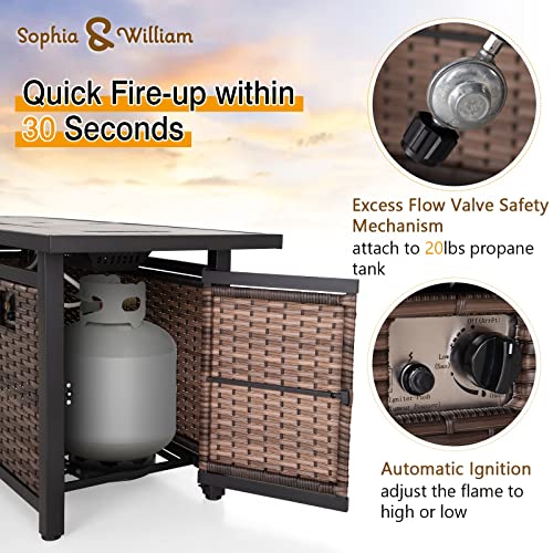 - Safe & Stable Heat Output – Gas fire pit is 50,000BTU heat output by using propane fuel to provide stable and clean burning without ash and smog. Firepits come with a safety shutoff that turns off the gas supply if the fire out. Backyard fire pits combine warmth and ambiance to bring family and friends together and make outdoor entertaining memorable.